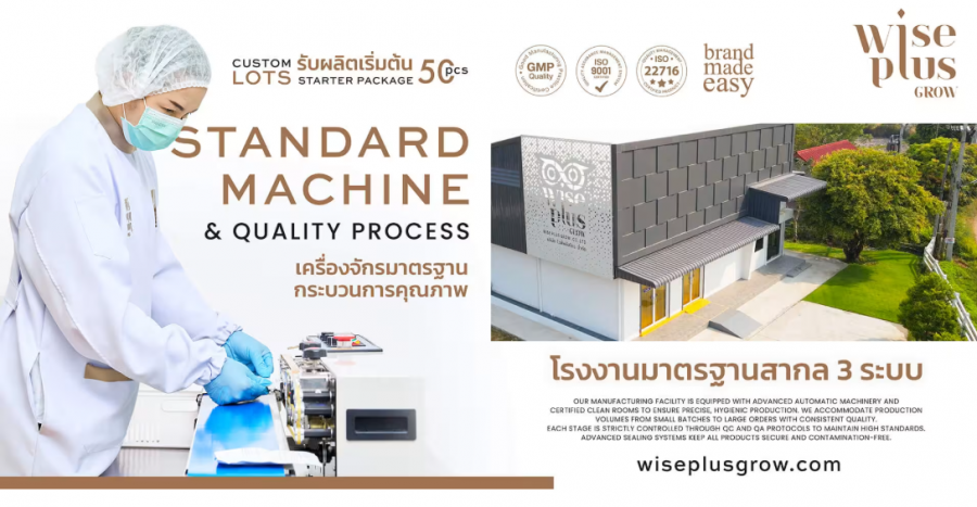 Wise Plus Grow ผลิตแชมพูและผลิตภัณฑ์ดูแลเส้นผมแบบครบวงจร มีมาตรฐาน GMP, ISO และ อย. โรงงานแห่งนี้เน้นการพัฒนาสูตรสำหรับตลาดเฉพาะทาง เช่น ผลิตภัณฑ์สำหรับผู้มีปัญหาผมร่วง หรือหนังศีรษะมัน ทำให้แบรนด์ของคุณสามารถเจาะกลุ่มลูกค้าเป้าหมายได้อย่างแม่นยำ